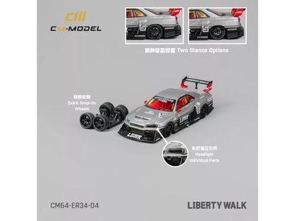 MINIGT ER34 SKYLINE LBWK チェイス + REGULAR CM MODEL 1/64 LB-ER34 SUPER SILHOUETTE NISSAN SKYLINE