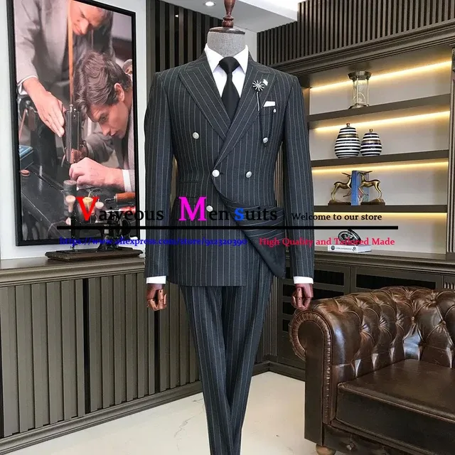 スーツ Double-breasted setup & shirt & tie Double Breasted Suit Blazer - Grey Charcoal Shadow Stripe