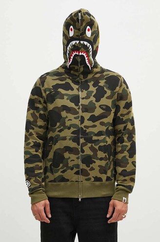 A BATHING APE 1ST CAMO SHARK CREWNECK BAPE 1st Camo Metal Zip Shark Crewneck Green Men's - US
